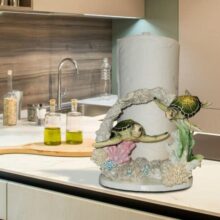 With its sea turtle motif and coral accents, this paper towel holder seamlessly incorporates a coastal theme into your kitchen, bathroom, or dining room table. It serves not only as a functional piece but also as a delightful decorative element, bringing a touch of the ocean’s beauty and serenity to your space.
